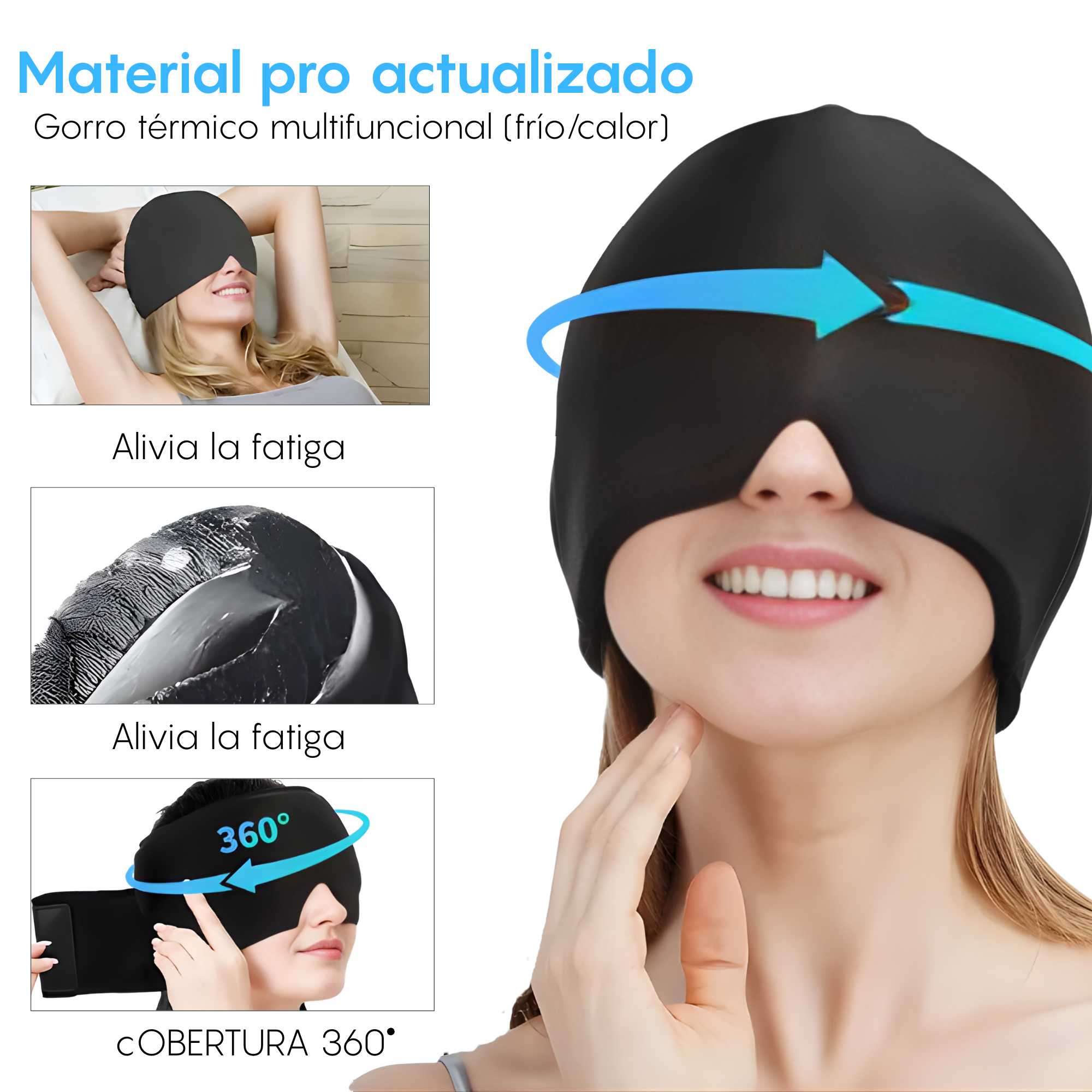 Gorro Masajeador Se Puede Ajusta Completo:Esta capucha de envoltura fría está diseñada con compresión elástica de doble costura,talla única,este producto es adecuado para cada rostro,cabeza y ojo. El diseño de ajuste de 360° proporciona un mejor contacto para una mejor cobertura de la cabeza y los ojos con un 20% más de cobertura que otros gorros para bolsas de hielo.